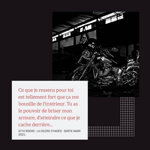 De quoi ça parle : La colère. C’est le sentiment qui guide Ash depuis que sa fiancée l’a quitté le jour de leur mariage, il y a dix ans de cela. Aussi solitaire qu’Hadès dans son royaume des Enfers, il partage sa vie entre son salon de tatouage et les Styx Riders, le club de bikers qui est pour lui plus qu’une famille. Sergent d’armes en son sein, il laisse libre cours à sa rage pour mettre au pas les ennemis du MC. Mais tout change le jour où Heden apparaît dans son existence. Elle-même fille de biker, la pétillante fleuriste dégage une joie de vivre qui perce aussitôt les défenses d’Ash, ramenant enfin la lumière dans son monde obscur. Pour elle, parviendra-t-il à trouver le chemin de l’apaisement ?