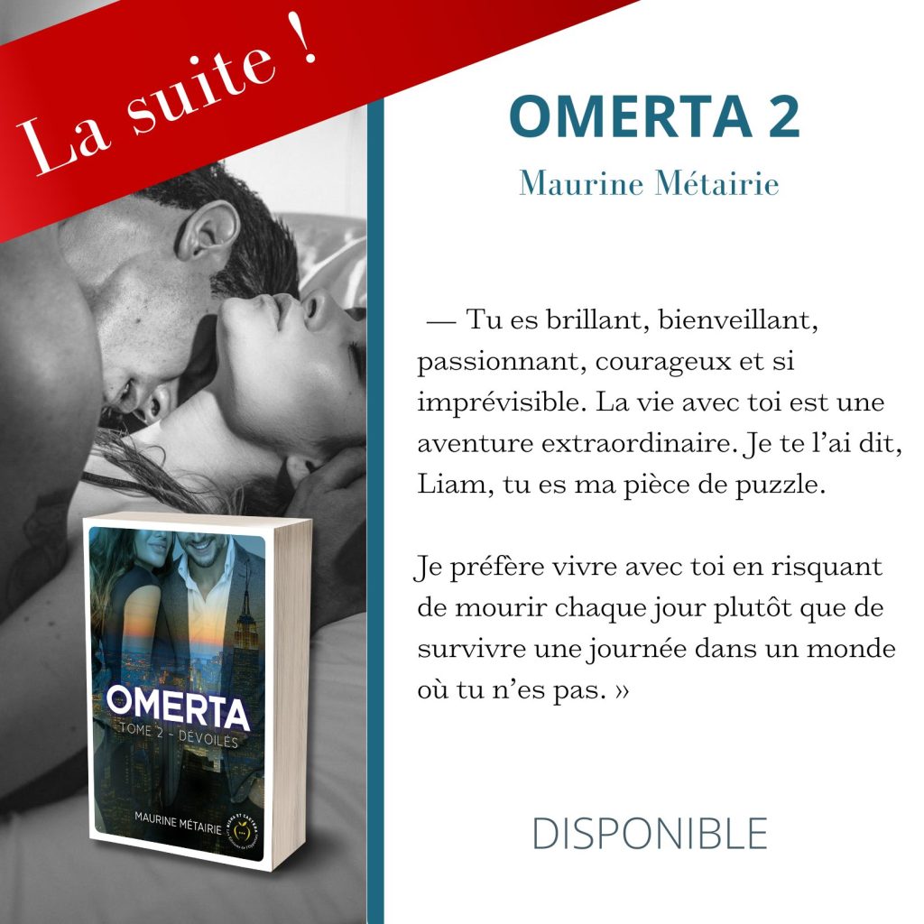 Avis : J’avais aimé le premier tome, j’ai adoré celui-ci ! Nous découvrons un peu plus la mafia, mais également le passé de Liam, Trey et Caled. Ce trio a grandi ensemble et se serre les coudes pour découvrir qui veut nuire à la Cosa Nostra. L’étau se ressent et les suspects ne sont pas ménagés. Liam est persuadé que celui qui frappe au cœur de l’organisation est l’un des siens et qu’il est forcément surentraîné et ne commettra aucune erreur… Sauf que.. il s’attaque à la mauvaise personne ! Joy est indépendante et déteste recevoir des ordres de celui qui fait battre son cœur. Elle ne regrette pas cette seconde chance et même si elle ne sait pas tout, elle accepte d’attendre que Liam lui confie ses moindres secrets. Elle apprécie leurs moments en amoureux tout autant ceux des présentations officielles. Cependant, toutes les histoires ont une fin et Joy va tomber de très haut ! Elle ne peut pas croire que Liam est ce qu’il est. Qu’il ne lui ait rien dit alors qu’il savait qu’il est tout ce qu’elle combat. Elle s’en veut des sentiments qu’elle ressent et compte bien mettre un point final à tout ce cirque. Elle aura dû écouter Tess, ne pas se lancer à corps perdu dans cette relation qui l’a détourné de son quotidien. L’action arrive crescendo. Au début, tout est beau, l’amour est sorti vainqueur et tout va pour le mieux… mais ensuite, celui que veut prendre la place de Liam accélère et le sang risque de couler autant que les larmes. Si j’ai deviné qui en voulait à Liam 💪, j’ai aimé voir le cheminement du chef et de ses sbires. Liam a beaucoup à perdre dans cette histoire et pourtant il ne veut que protéger celle qu’il aime. Un petit coup de cœur pour Ned, cet homme de main a toujours été dans la vie de son patron et restera à ses côtés pour la pire des épreuves. J’ai eu peur pour Liam et sa scorta 😱. J’ai adoré la force de Joy, qu’elle se batte pour ses envies. Je ne peux que vous conseiller ce second tome. Le premier posait l’action, le second vous maintient en apnée ! Je n’avais pas envie de les laisser partir. Qui sait, peut-être aurons-nous l’histoire de Trey 🤞.